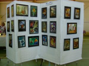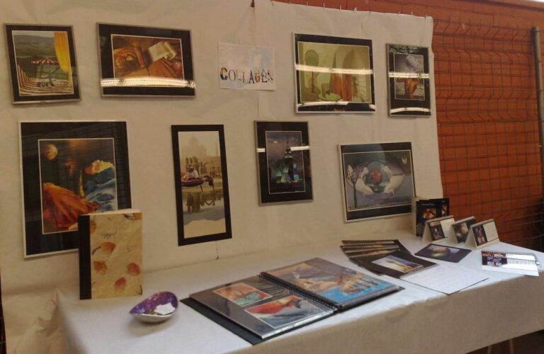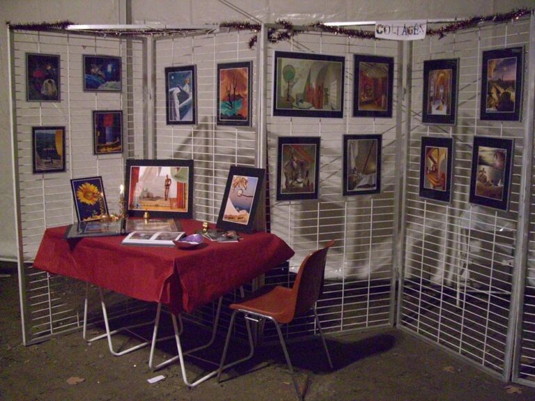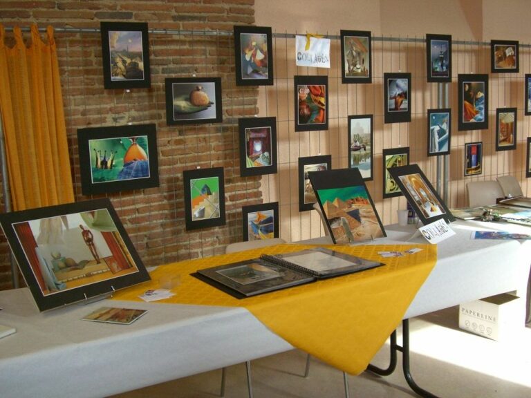 Mes collages ont voyagé à travers différents lieux : marchés de créateurs, restaurants, galeries, expositions collectives ou personnelles. Voici un aperçu chronologique de ce parcours artistique depuis mon tout premier timide vernissage en 2005